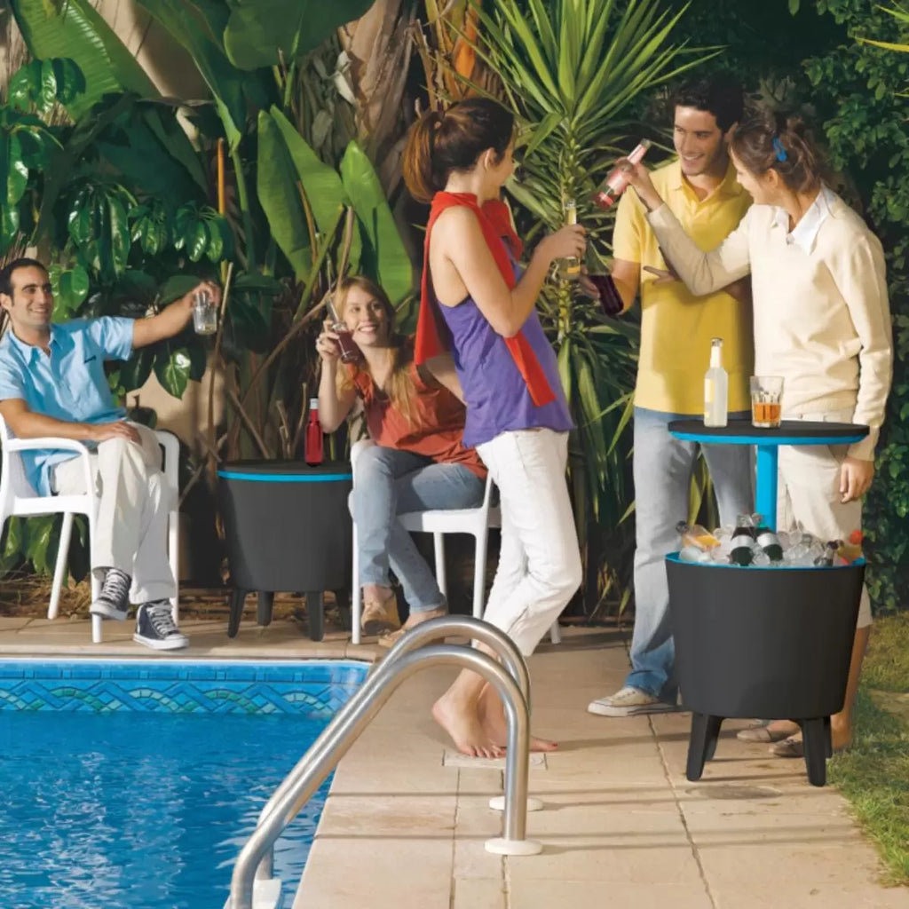 Além de ser um cooler de 30 litros, o Cool Bar pode ser usado como uma mesa de apoio para os petiscos e copos. Com design moderno, versátil e encantador, é ideal para ser usada em churrascos, happy hours, e confraternizações com amigos e familiares. Este modelo tem parte interna na cor preta.