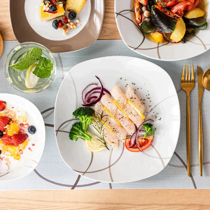 - Feito de porcelana durável e de alto calor, não tóxico e inofensivo, certificado pelo FDA, sem chumbo e cádmio, nosso conjunto de louças não causará nenhuma reação química com a alimentação diária, garantindo a alimentação saudável de suas famílias