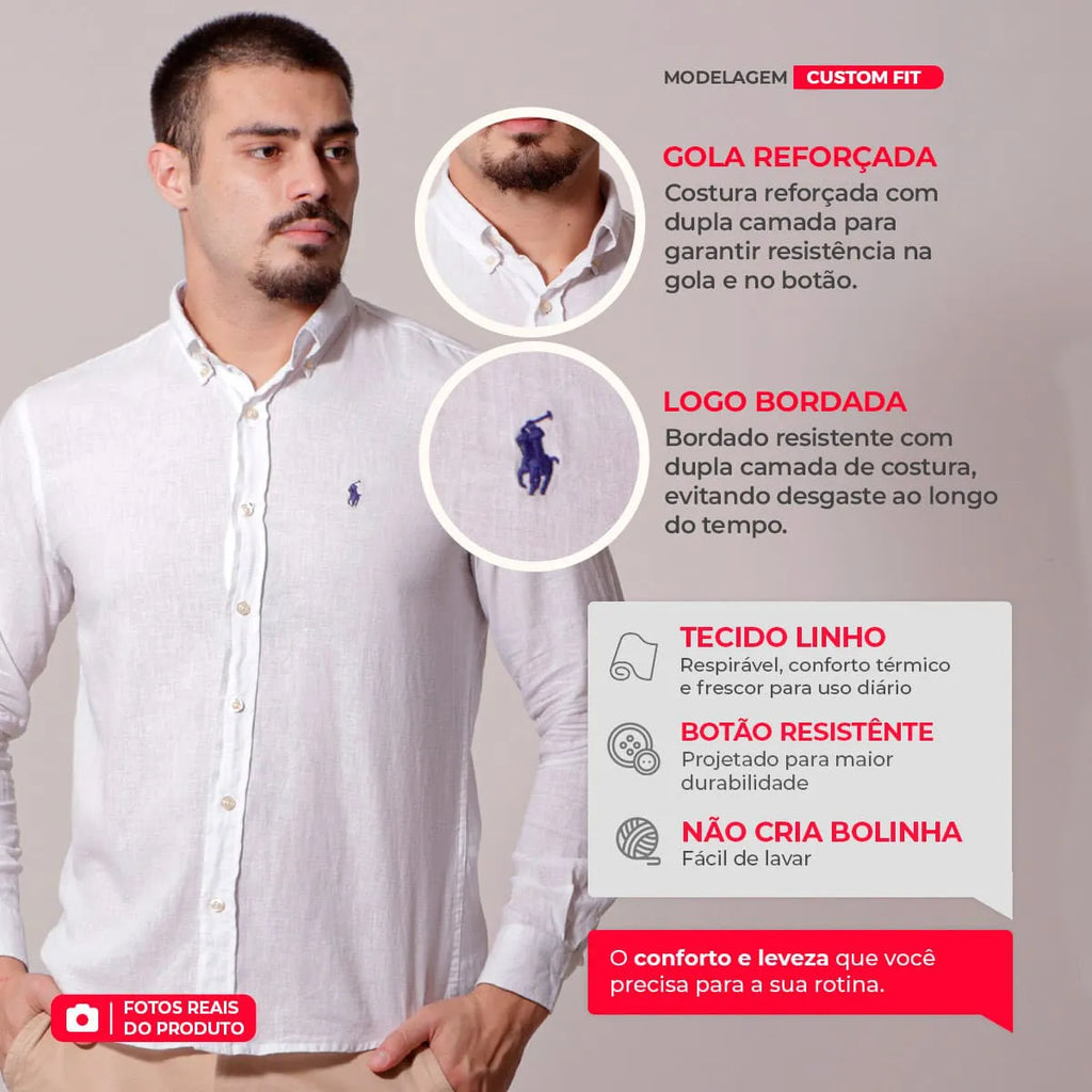 Kit 3 Camisas Sociais Ralph Lauren Custom Fit - Pague 1 Leve 3 SOMENTE HOJE